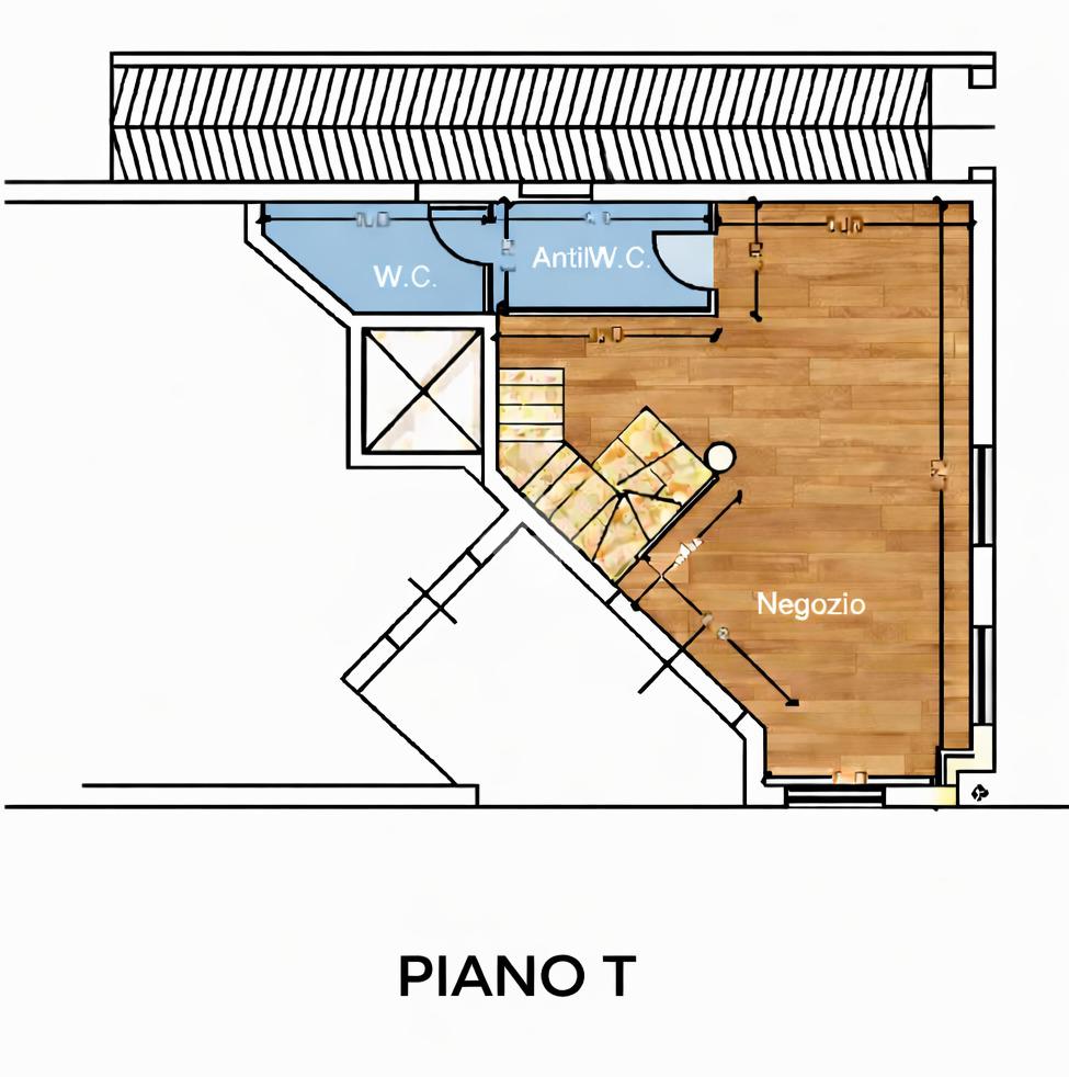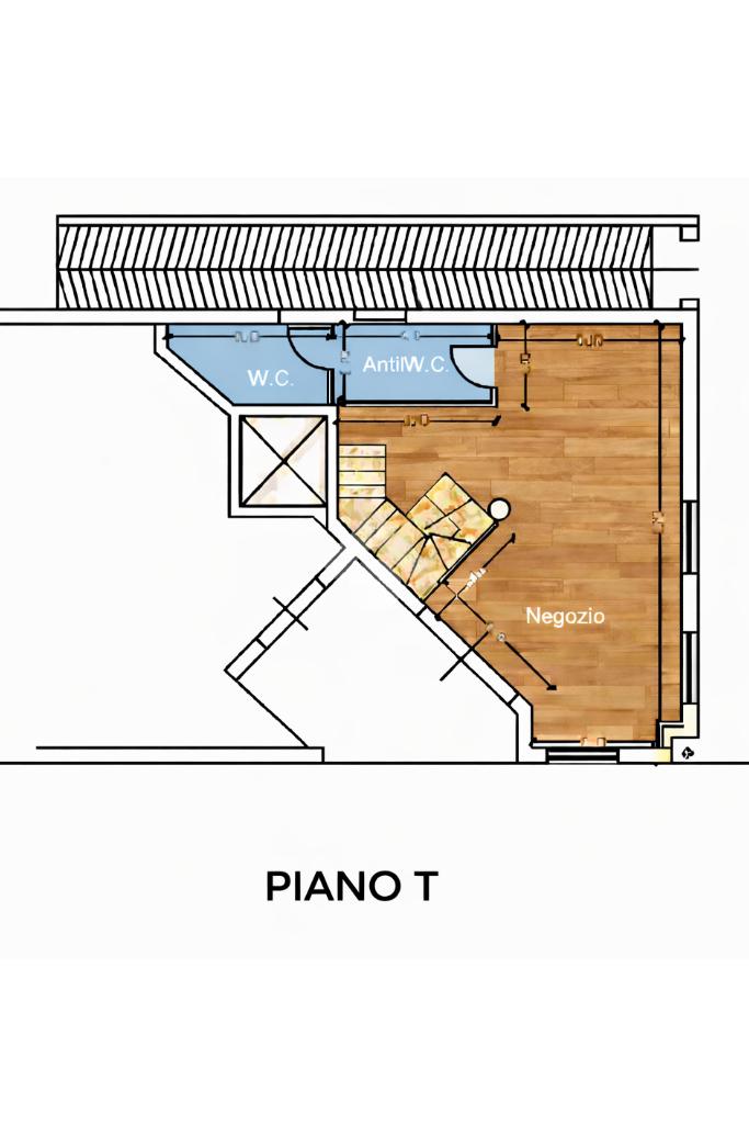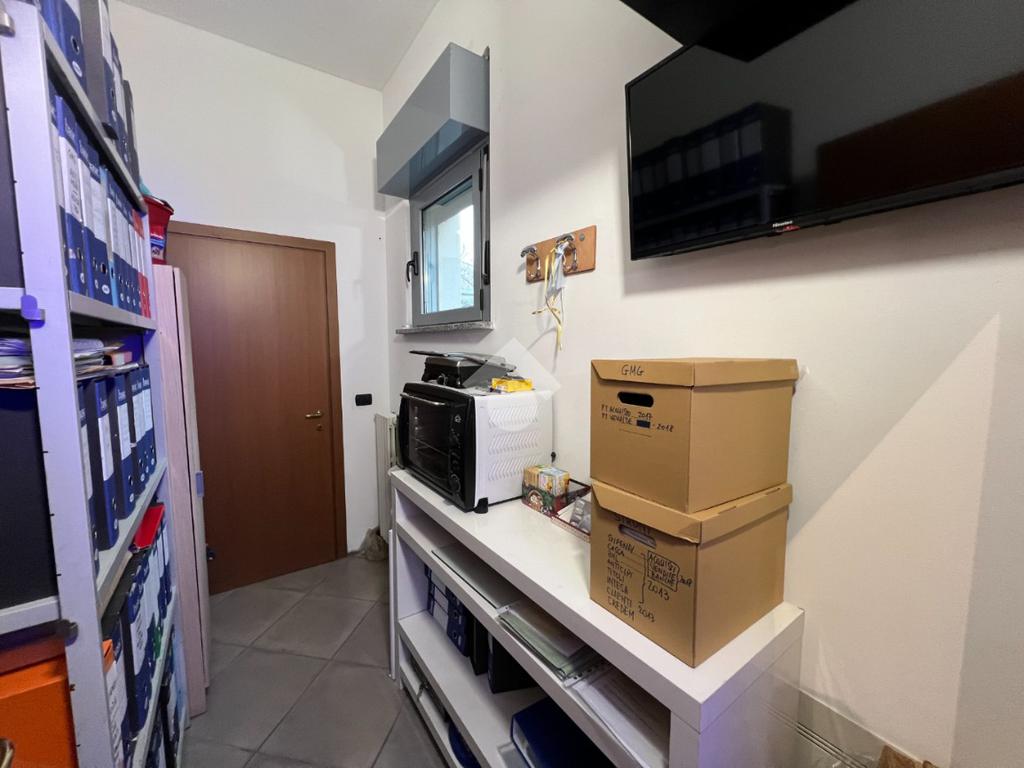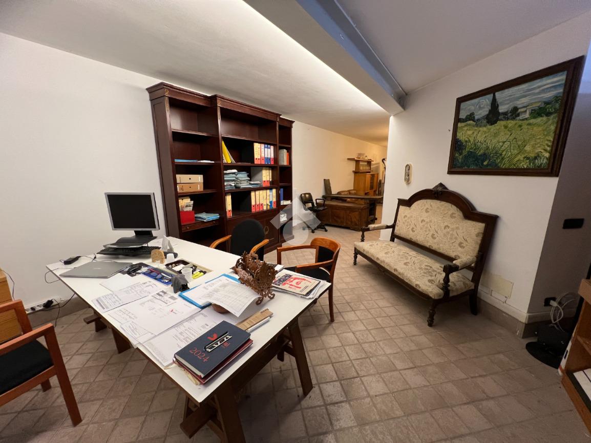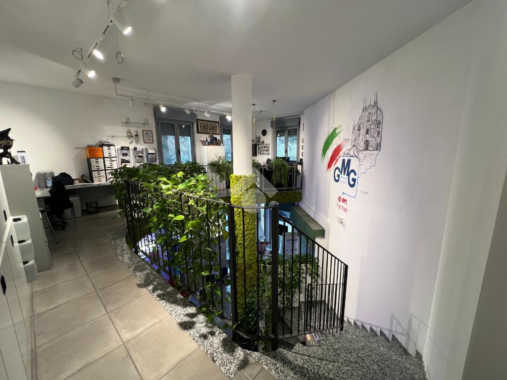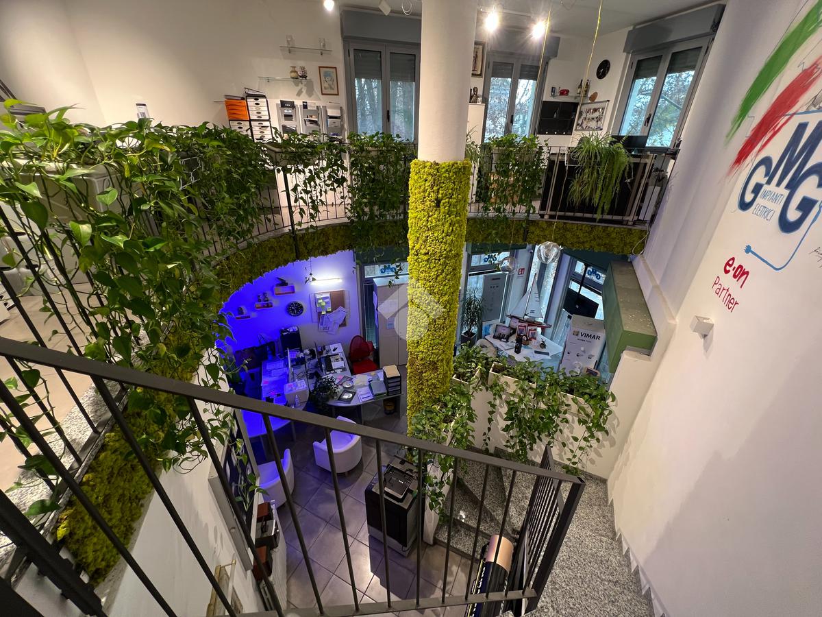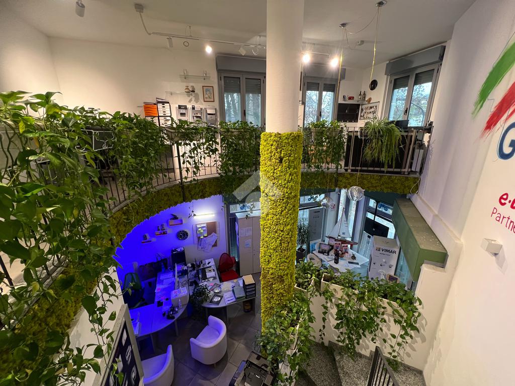 Il piano terra, attualmente adibito a ufficio, si presenta in eccellenti condizioni, con ambienti luminosi, moderni e immediatamente operativi, offrendo un’immagine professionale e accogliente; da qui si accede al primo piano soppalcato, affacciato sul vuoto centrale a doppia altezza, che dona ampiezza e continuità visiva agli spazi, creando un ambiente di lavoro arioso e contemporaneo. Il piano seminterrato, finestrato e ben areato, è dotato di servizio igienico; dispone di ingresso indipendente ma è collegato internamente agli altri livelli, consentendo di unificare l’intero immobile in un unico spazio continuo destinato a una sola realtà.